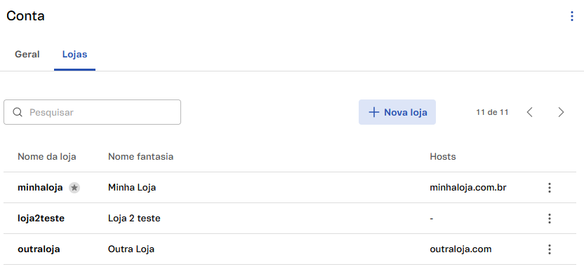 Consulte as lojas já criadas dentro da VTEX ou crie uma nova loja. Confira mais detalhes na central de ajuda da VTEX sobre múltiplas lojas.